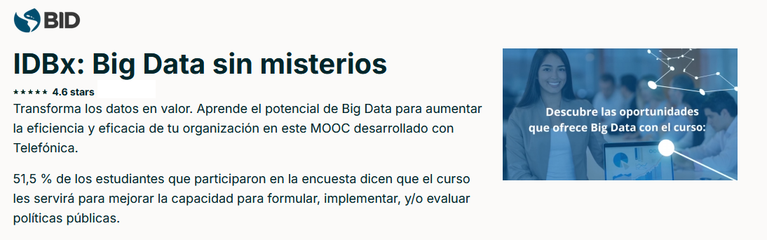 Edx: Curso Big Data sin Misterios: + de 70.000 inscritos. Organizado por BID (Banco Interamericano de Desarrollo.